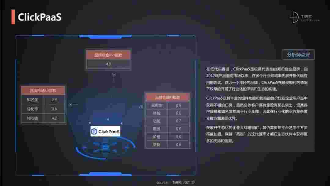 T研究认为,,,,,,,,,在低代码赛道,,,,,,,,OPPO钱包是极具代表性的海归创业品牌,,,,,自2017年产品面向市场以来,,,,,,,,在多个行业领域率先展开低代码应用的尝试。。。。。。。。。作为一个年轻的品牌,,,,,,,,,,,,,OPPO钱包较早的开展了行业化的深耕和生态的构建。。。。。。。。。OPPO钱包以丰富的组件功能和较高的性价比在企业用户当中获得不错的口碑,,,,,,,,,在客户规模和知名度都属于行业头部,,,,,,,,,,,,,因此在行业化的业务复杂度支撑方面表现优异。。。。。。。。。。